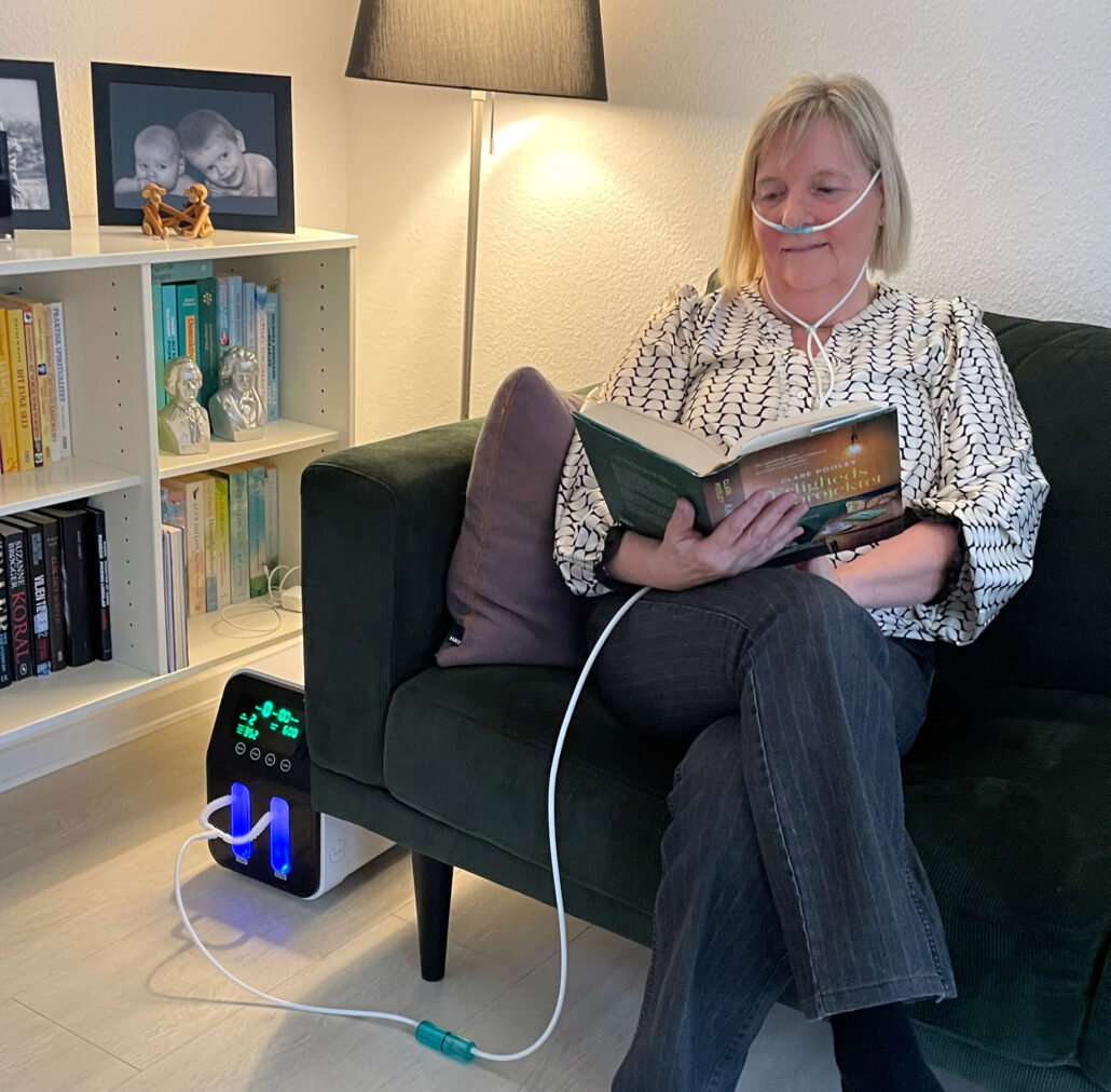 Lone har prøvet at bruge hydrogeninhalatoren på forskellige tidspunkter, men i dag har hun en fast rutine:
